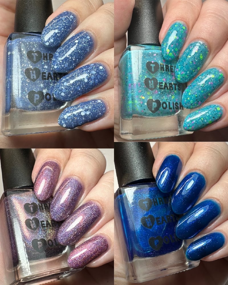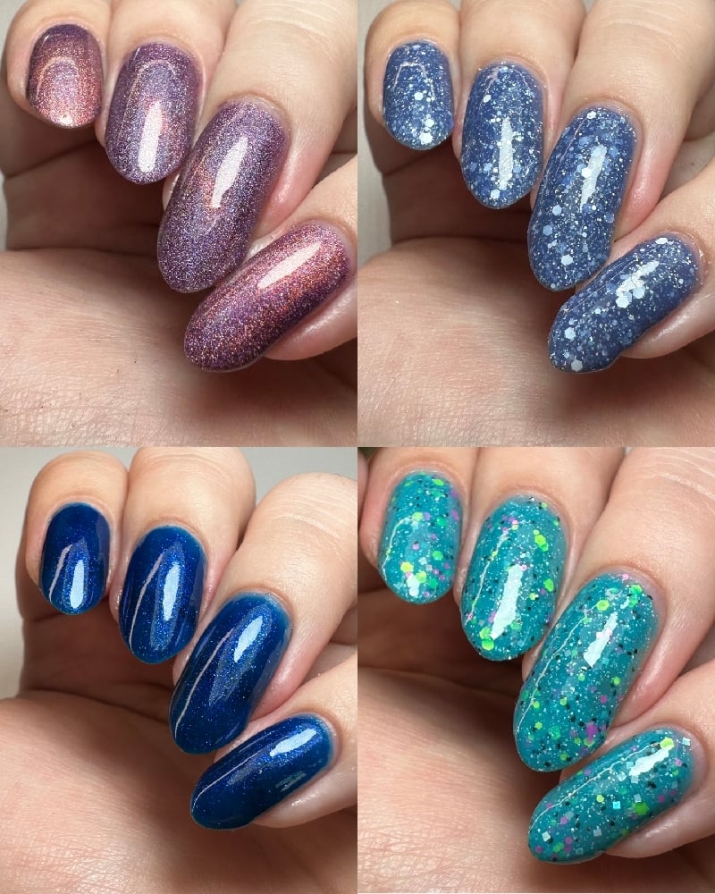 Cloudburst is a cornflower blue featuring assorted glitters in white and silver
